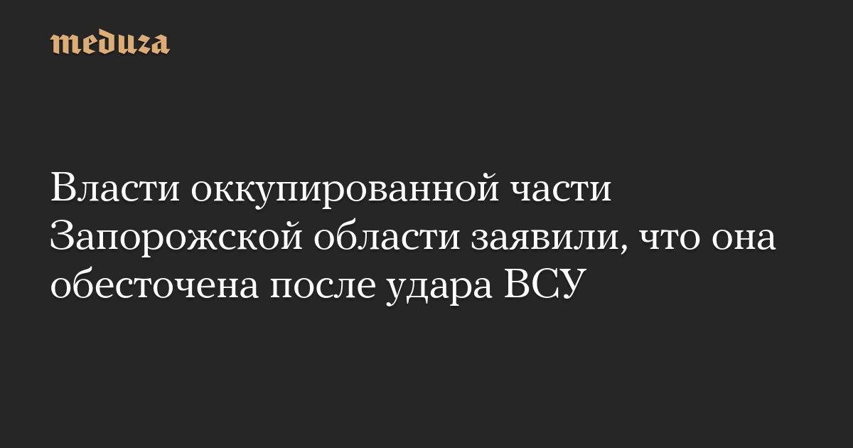 Власти оккупированной части Запорожской области заявили, что она обесточена после удара ВСУ
