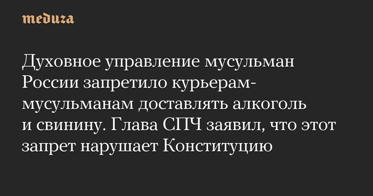 Духовное управление мусульман России запретило курьерам-мусульманам доставлять алкоголь и свинину. Глава СПЧ заявил, что этот запрет нарушает Конституцию
