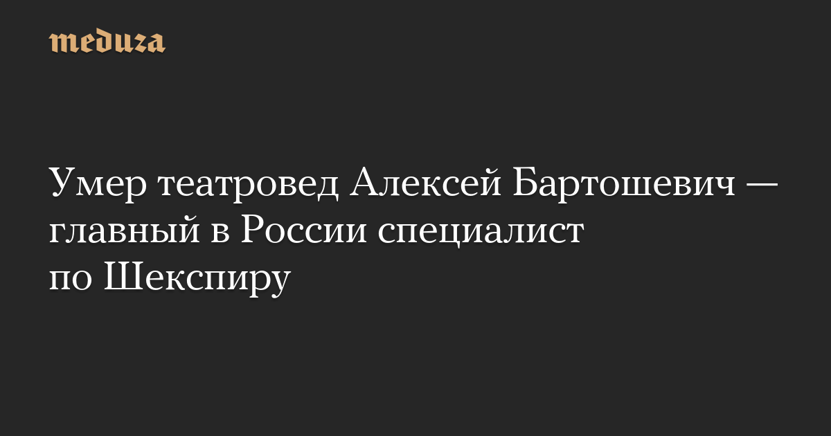 Умер театровед Алексей Бартошевич — главный в России специалист по Шекспиру