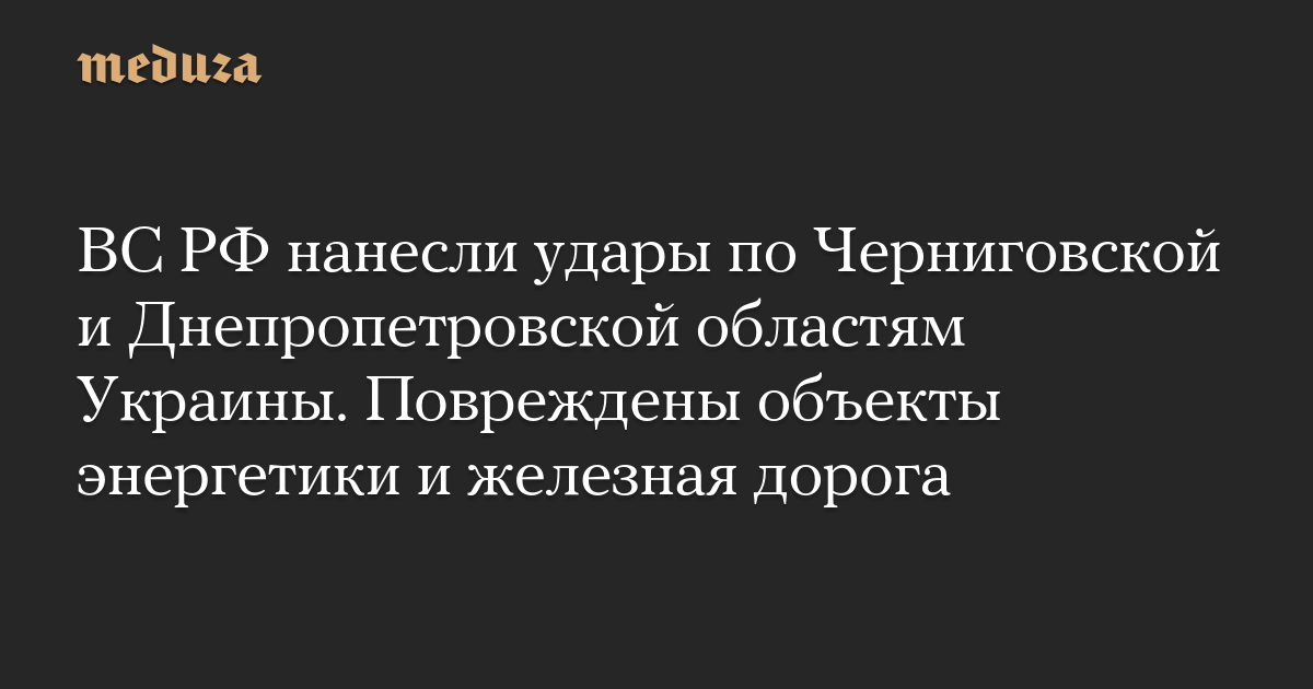 ВС РФ нанесли удары по Черниговской и Днепропетровской областям Украины. Повреждены объекты энергетики и железная дорога