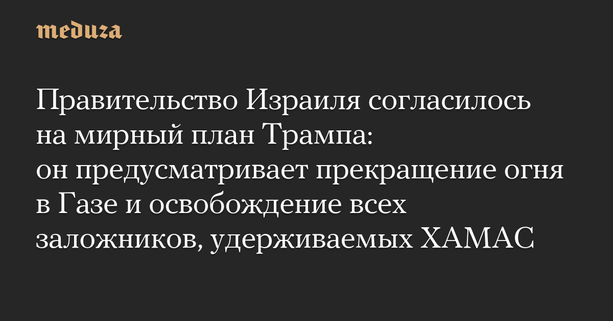 Правительство Израиля согласилось на мирный план Трампа: он предусматривает прекращение огня в Газе и освобождение всех заложников, удерживаемых ХАМАС