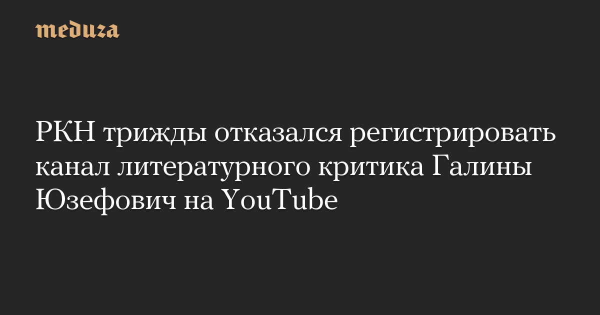 РКН трижды отказался регистрировать канал литературного критика Галины Юзефович на YouTube