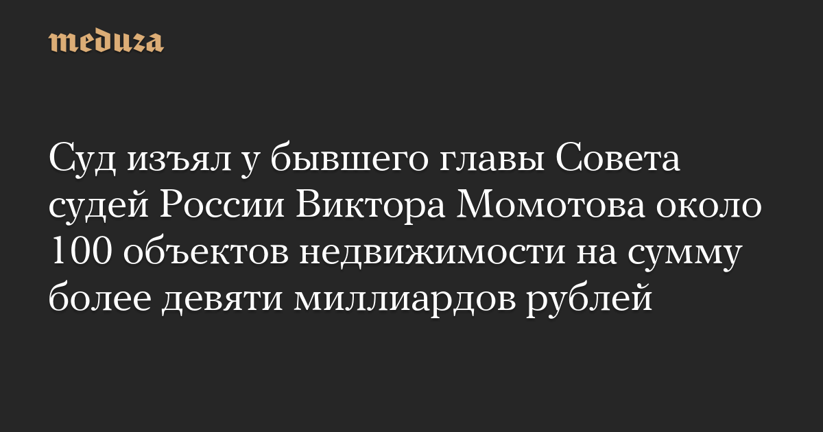 Останкинский районный суд Москвы удовлетворил иск Генпрокуратуры и изъял в доход государства имущество и активы бывшего главы Совета судей России Виктора Момотова, передают РБК и ТАСС.