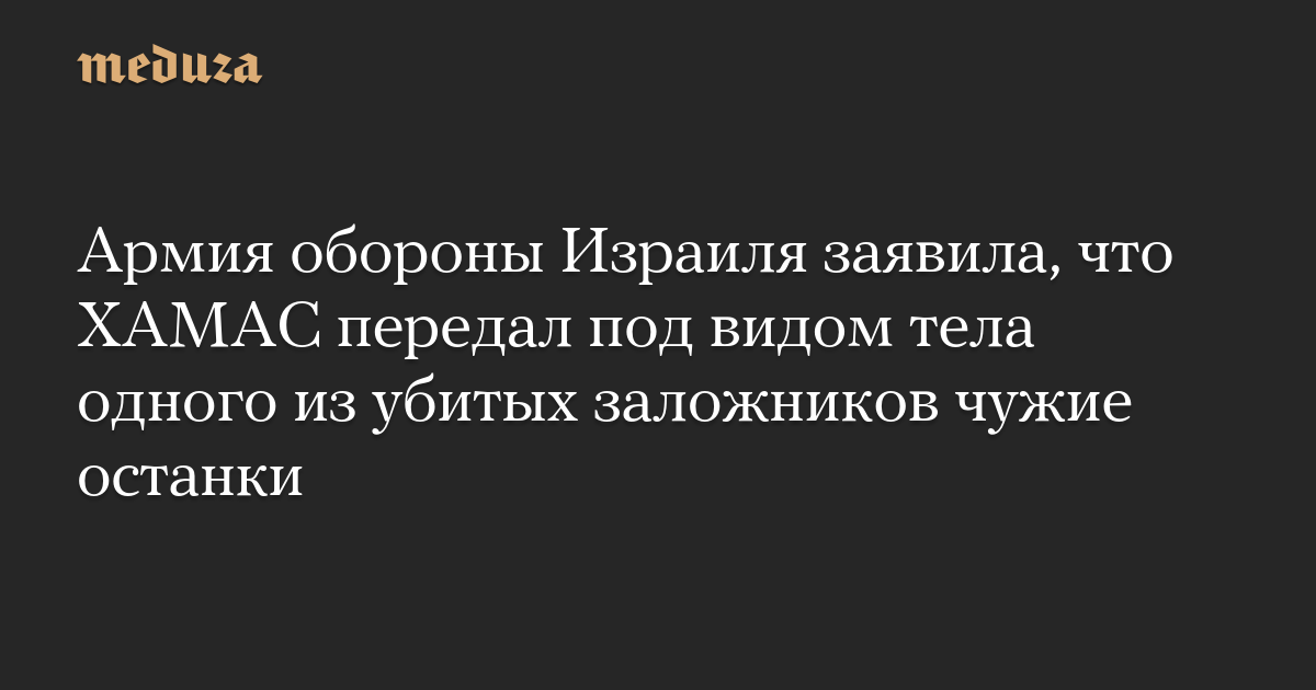Армия обороны Израиля заявила, что ХАМАС передал под видом тела одного из убитых заложников чужие останки