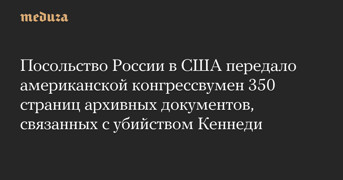 Посольство России в США передало американской конгрессвумен 350 страниц архивных документов, связанных с убийством Кеннеди
