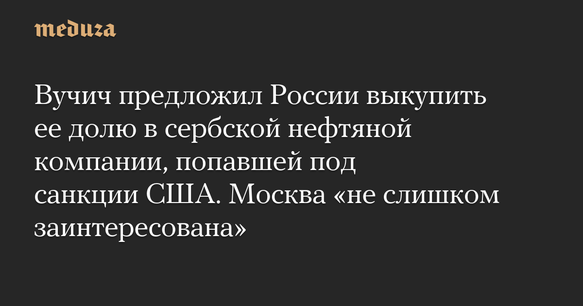 Вучич предложил России выкупить ее долю в сербской нефтяной компании, попавшей под санкции США. Москва «не слишком заинтересована»
