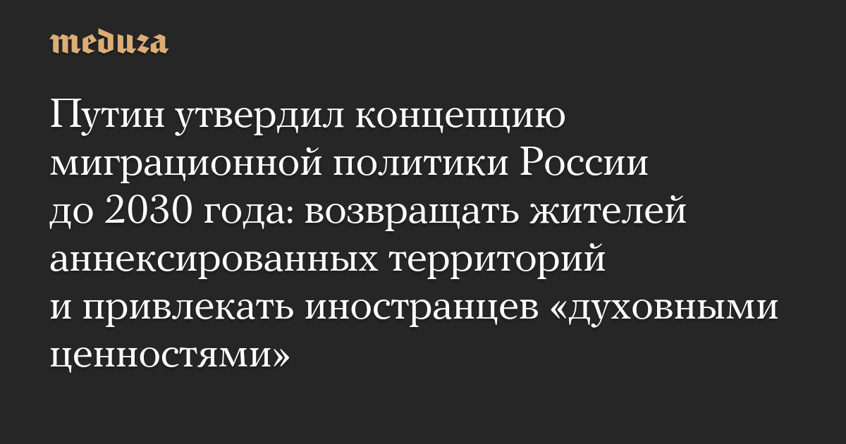 Путин утвердил концепцию миграционной политики России до 2030 года: возвращать жителей аннексированных территорий и привлекать иностранцев «духовными ценностями»