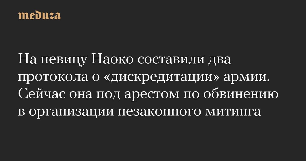 На певицу Наоко составили два протокола о «дискредитации» армии. Сейчас она под арестом по обвинению в организации незаконного митинга
