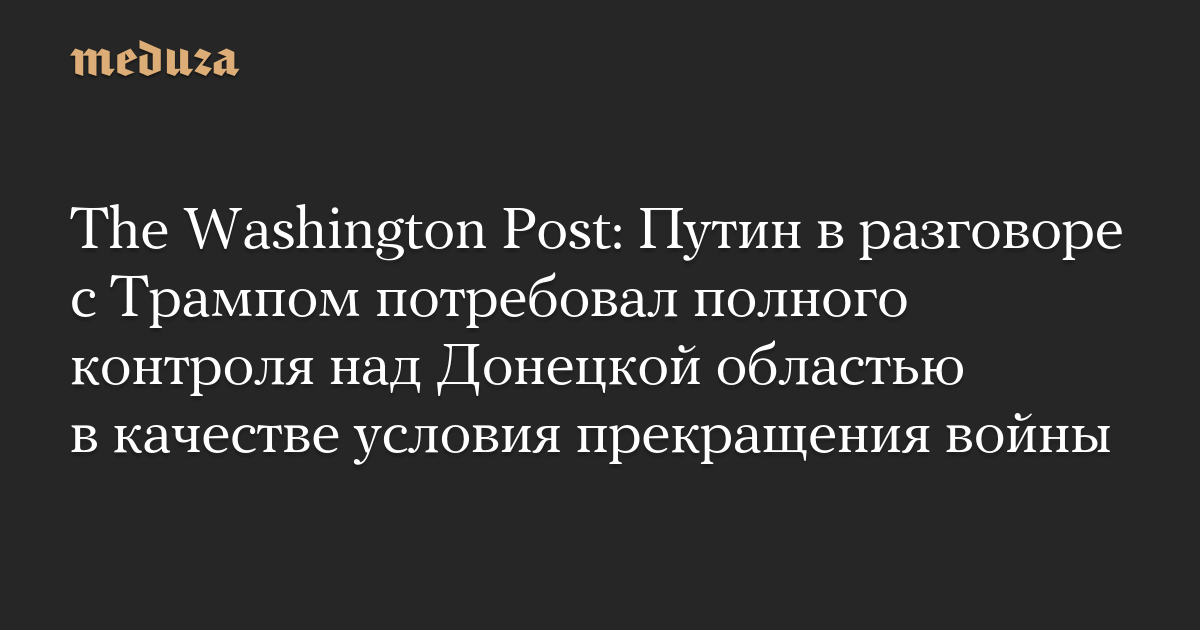 The Washington Post: Путин в разговоре с Трампом потребовал полного контроля над Донецкой областью в качестве условия прекращения войны