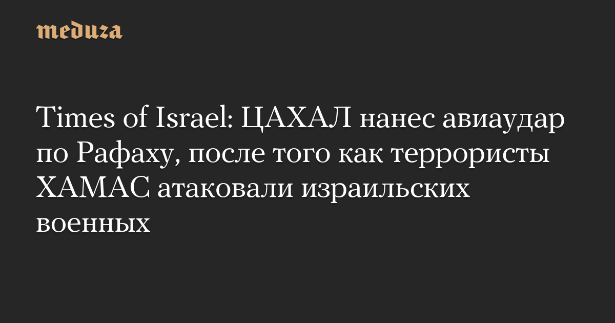 Times of Israel: ЦАХАЛ нанес авиаудар по Рафаху, после того как террористы ХАМАС атаковали израильских военных