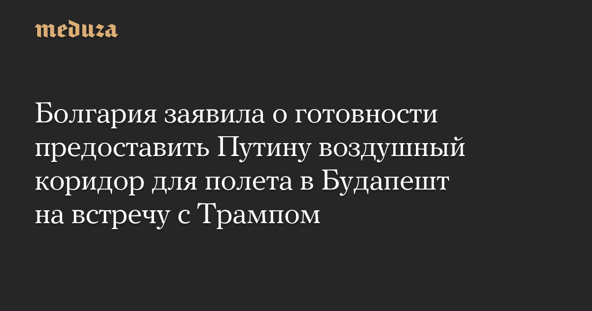 Болгария заявила о готовности предоставить Путину воздушный коридор для полета в Будапешт на встречу с Трампом