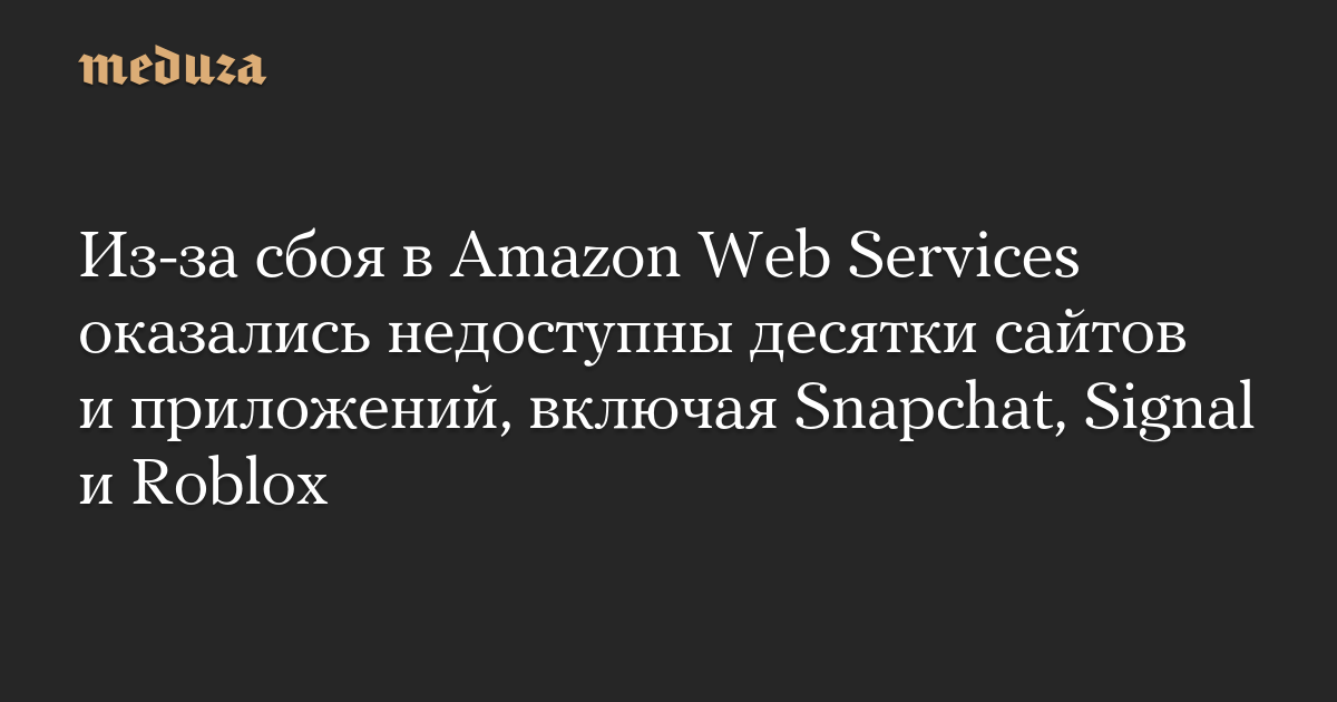 Из-за сбоя в Amazon Web Services оказались недоступны десятки сайтов и приложений, включая Snapchat, Signal и Roblox