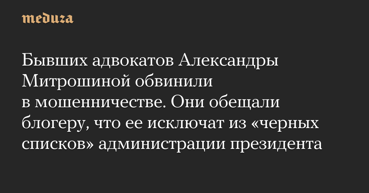 Бывших адвокатов Александры Митрошиной обвинили в мошенничестве. Они обещали блогеру, что ее исключат из «черных списков» администрации президента