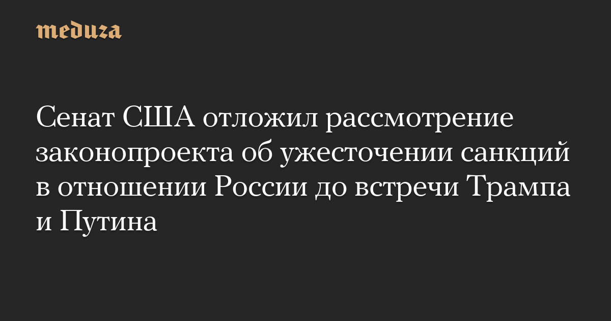 Верхняя палата конгресса США «поставила на паузу» рассмотрение законопроекта о новых санкциях в отношении России как минимум до встречи Дональда Трампа и Владимира Путина в Будапеште, сообщает Bloomberg.