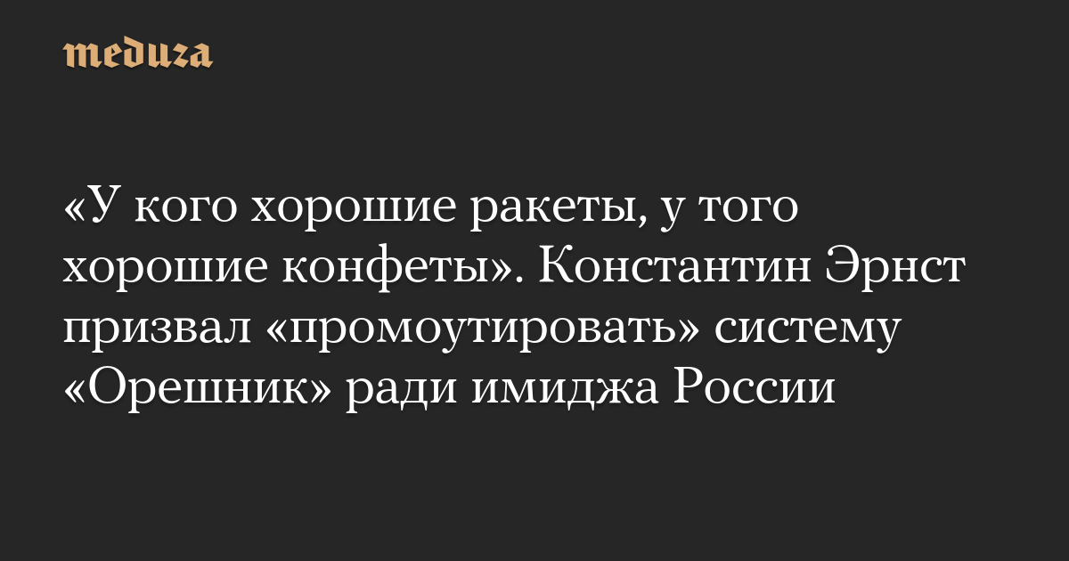 «У кого хорошие ракеты, у того хорошие конфеты». Константин Эрнст призвал «промоутировать» систему «Орешник» ради имиджа России