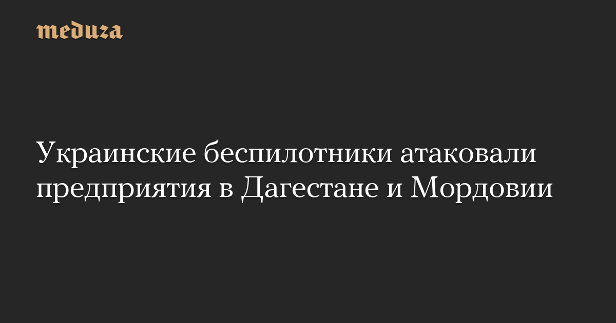 Украинские беспилотники атаковали предприятия в Дагестане и Мордовии