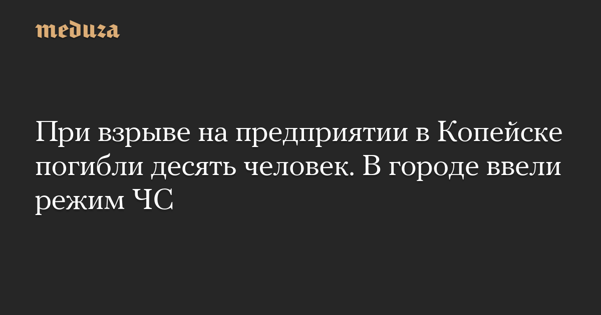 При взрыве на предприятии в Копейске погибли десять человек. В городе ввели режим ЧС
