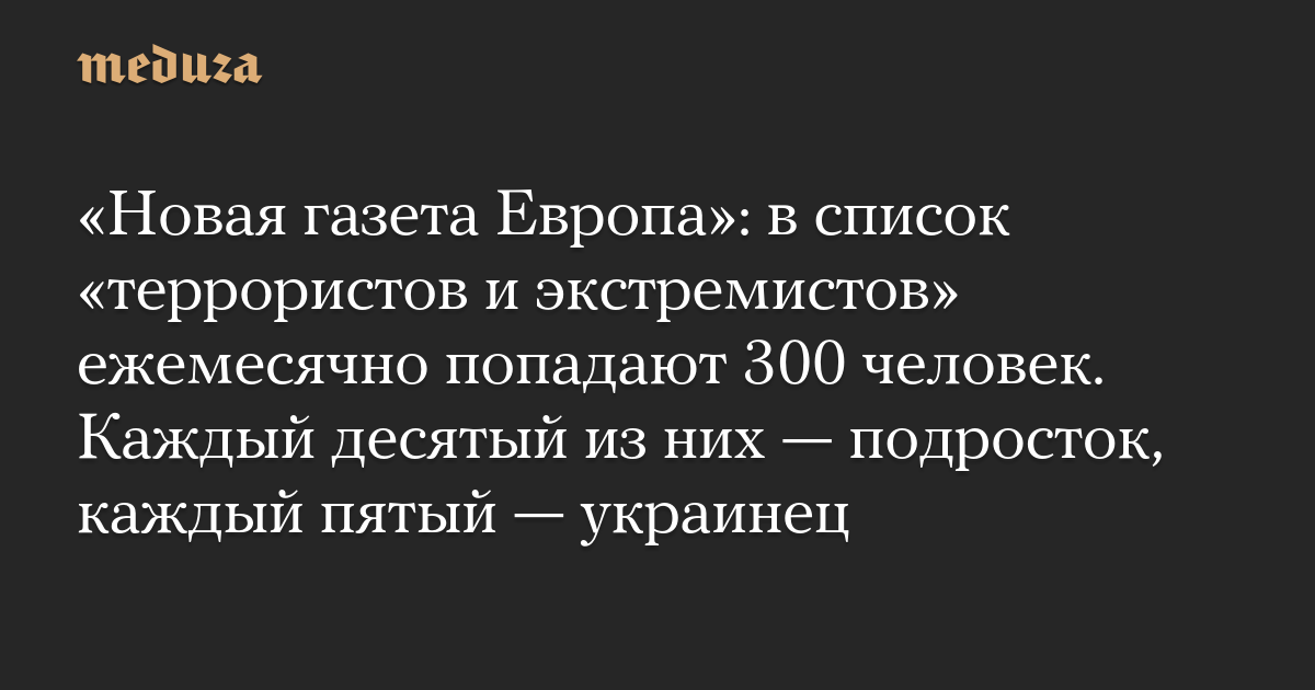 «Новая газета Европа»: в список «террористов и экстремистов» ежемесячно попадают 300 человек. Каждый десятый из них — подросток, каждый пятый — украинец