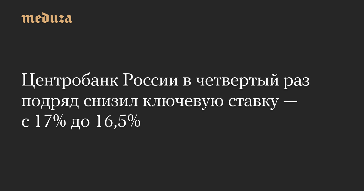 Центробанк России в четвертый раз подряд снизил ключевую ставку — с 17% до 16,5%