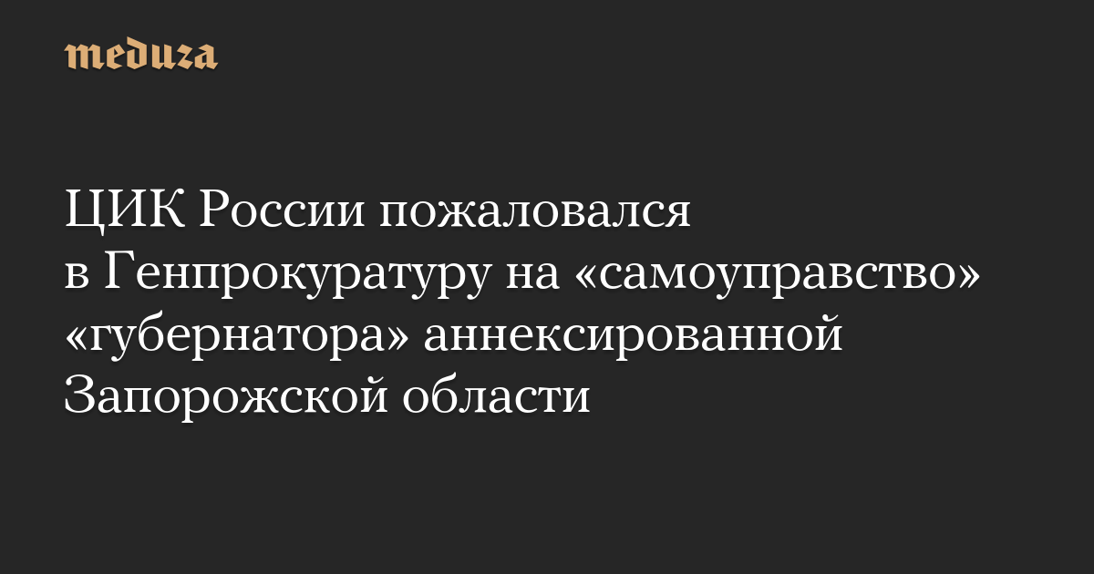 ЦИК России пожаловался в Генпрокуратуру на «самоуправство» «губернатора» аннексированной Запорожской области