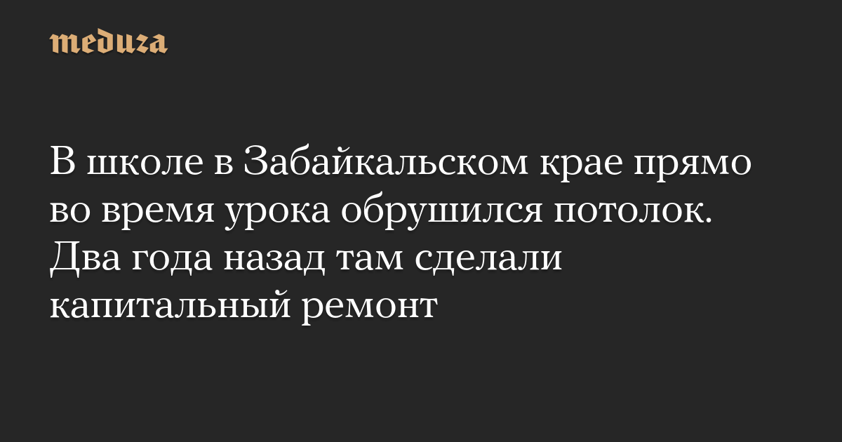 В школе в Забайкальском крае прямо во время урока обрушился потолок. Два года назад там сделали капитальный ремонт