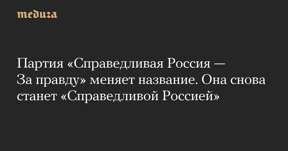 Партия «Справедливая Россия — За правду» меняет название. Она снова станет «Справедливой Россией»