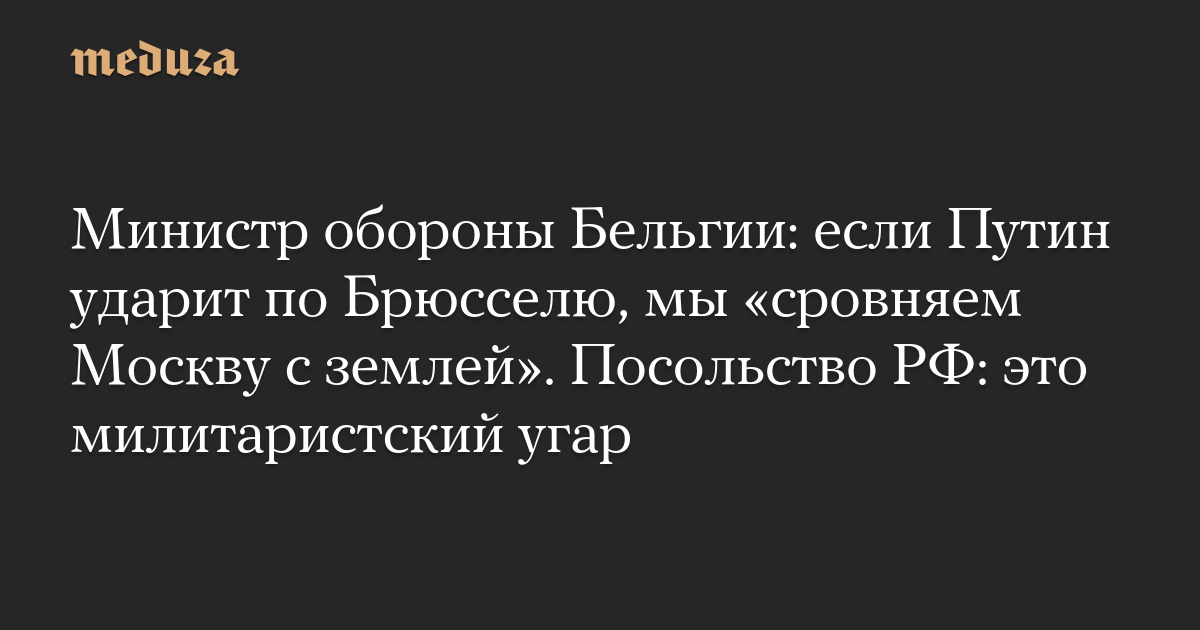 Министр обороны Бельгии: если Путин ударит по Брюсселю, мы «сровняем Москву с землей». Посольство РФ: это милитаристский угар