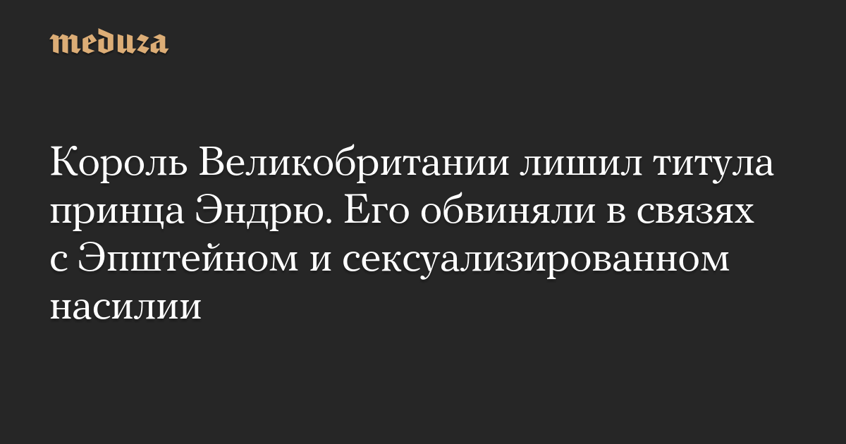 Принц Эндрю, брат короля Великобритании Карла III, лишен всех своих титулов, сообщает 30 октября BBC News, ссылаясь на Букингемский дворец.