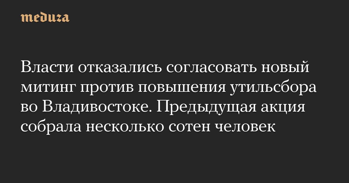 Мэрия Владивостока отказалась согласовать проведение 9 ноября митинга против повышения утилизационного сбора на автомобили и НДС, пишет «7×7 — Горизонтальная Россия».