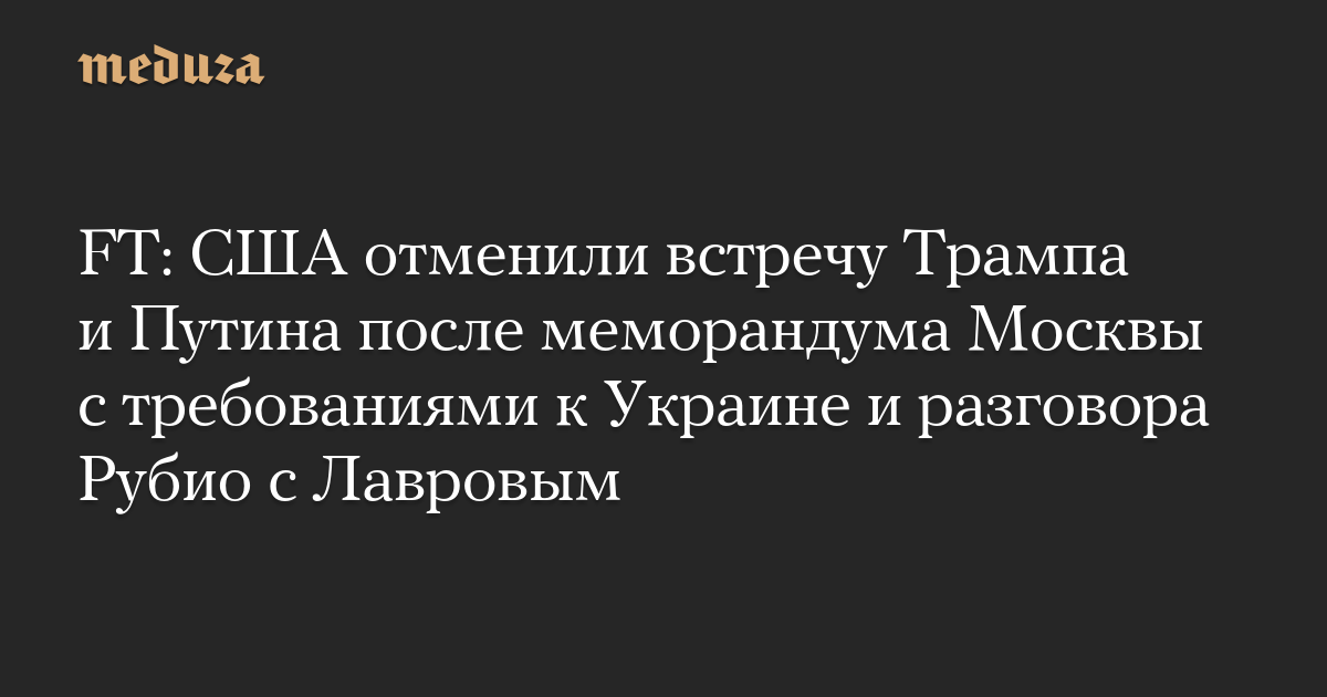FT: США отменили встречу Трампа и Путина после меморандума Москвы с требованиями к Украине и разговора Рубио с Лавровым