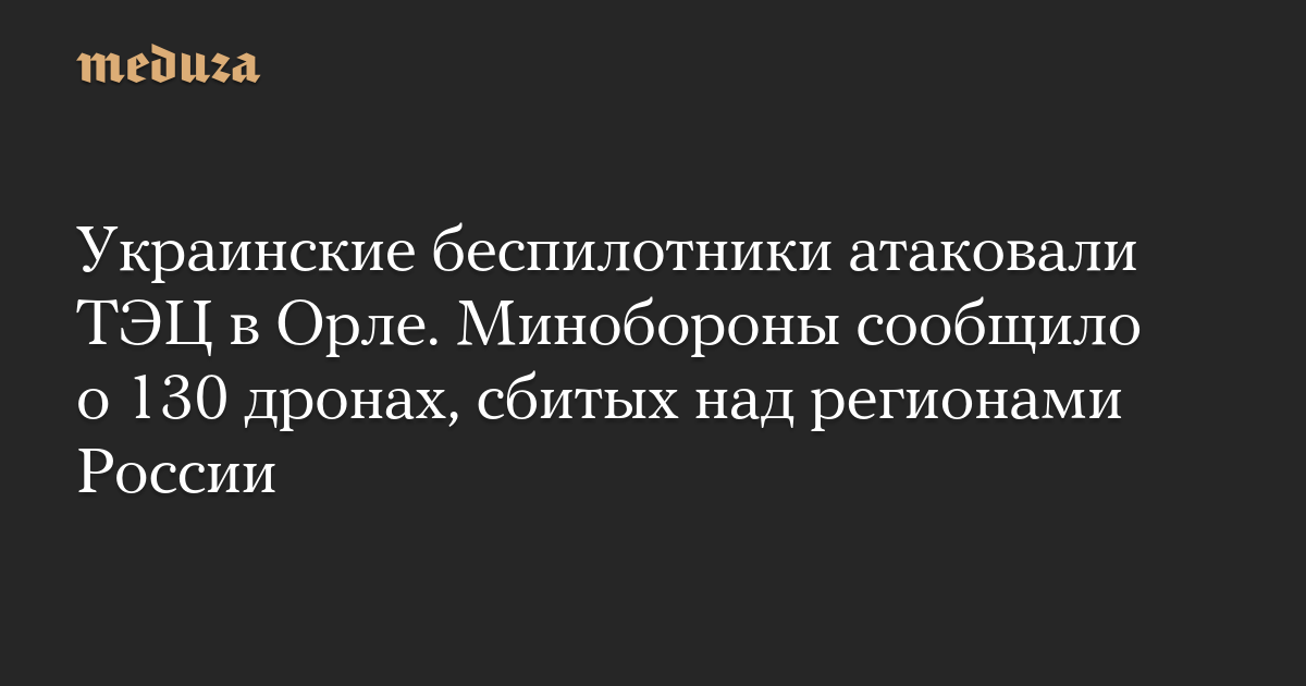 Украинские беспилотники атаковали ТЭЦ в Орле. Минобороны сообщило о 130 дронах, сбитых над регионами России