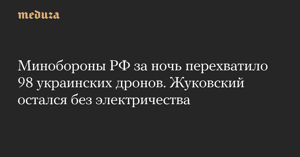 Минобороны РФ за ночь перехватило 98 украинских дронов. Жуковский остался без электричества