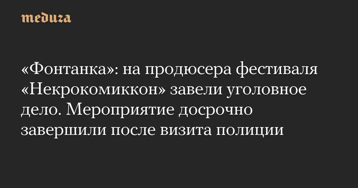 «Фонтанка»: на продюсера фестиваля «Некрокомиккон» завели уголовное дело. Мероприятие досрочно завершили после визита полиции