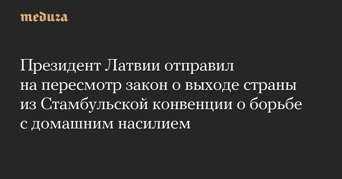 Президент Латвии отправил на пересмотр закон о выходе страны из Стамбульской конвенции о борьбе с домашним насилием
