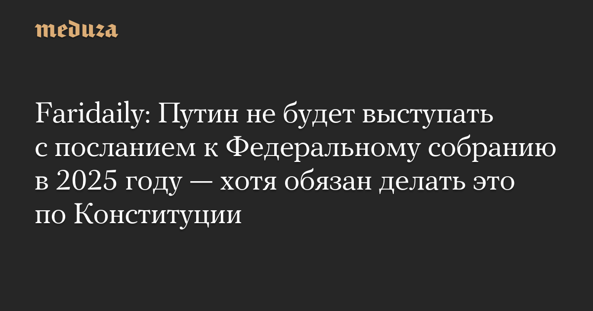 Faridaily: Путин не будет выступать с посланием к Федеральному собранию в 2025 году — хотя обязан делать это по Конституции