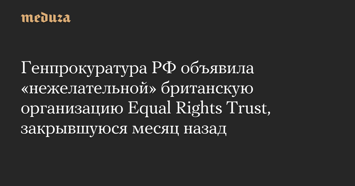 Генпрокуратура назвала «нежелательной» на территории России деятельность британской неправительственной организации Equal Rights Trust, которая объявила о своем закрытии месяц назад.