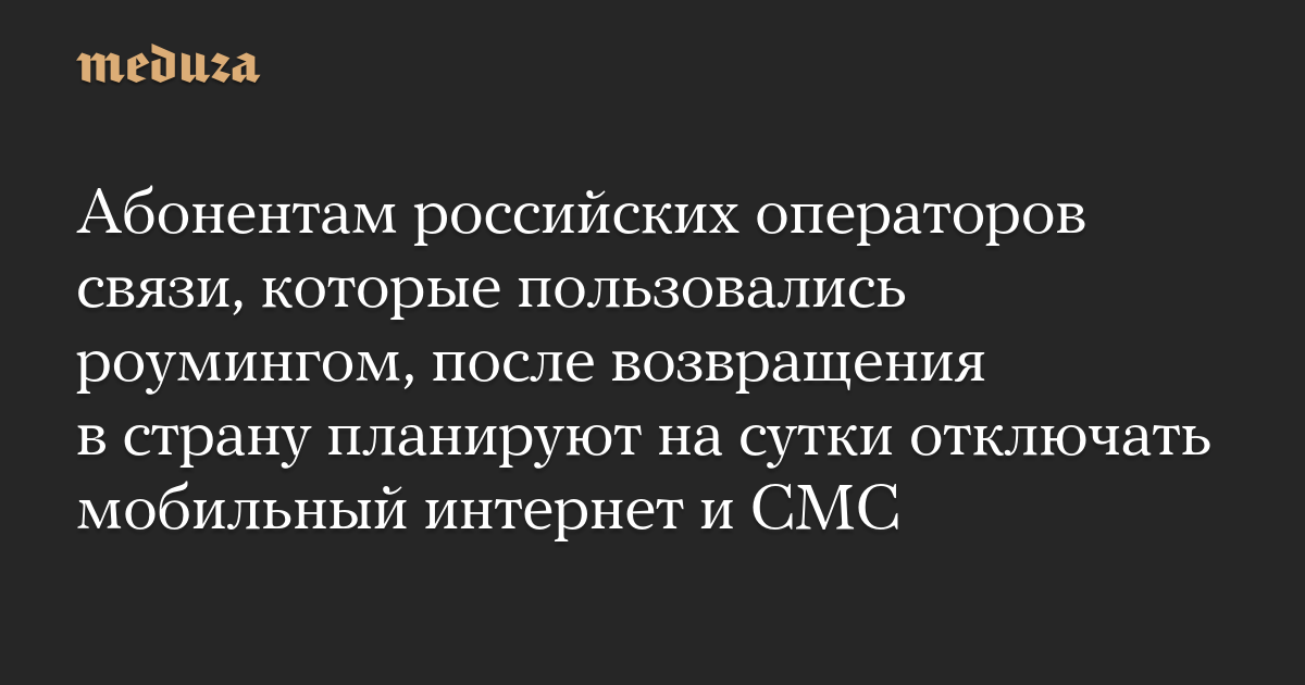 Абонентам российских операторов связи, которые пользовались роумингом, после возвращения в страну планируют на сутки отключать мобильный интернет и СМС