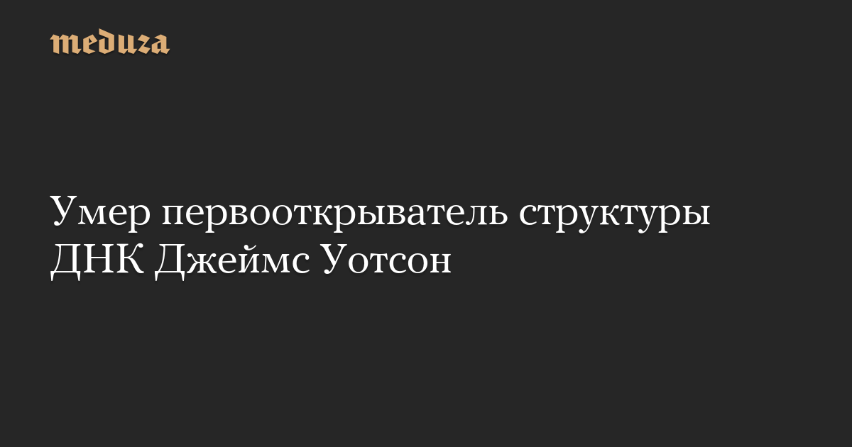 Один из выдающихся ученых XX века, американский биолог и генетик Джеймс Уотсон умер 6 ноября в возрасте 97 лет. Информацию о его смерти 7 ноября подтвердил сын ученого Дункан, сообщила газета The New York Times. Уотсон умер в хосписе в Ист-Нортпорте на Лонг-Айленде, штат Нью-Йорк, куда его перевели из больницы, где он лечился от инфекции.