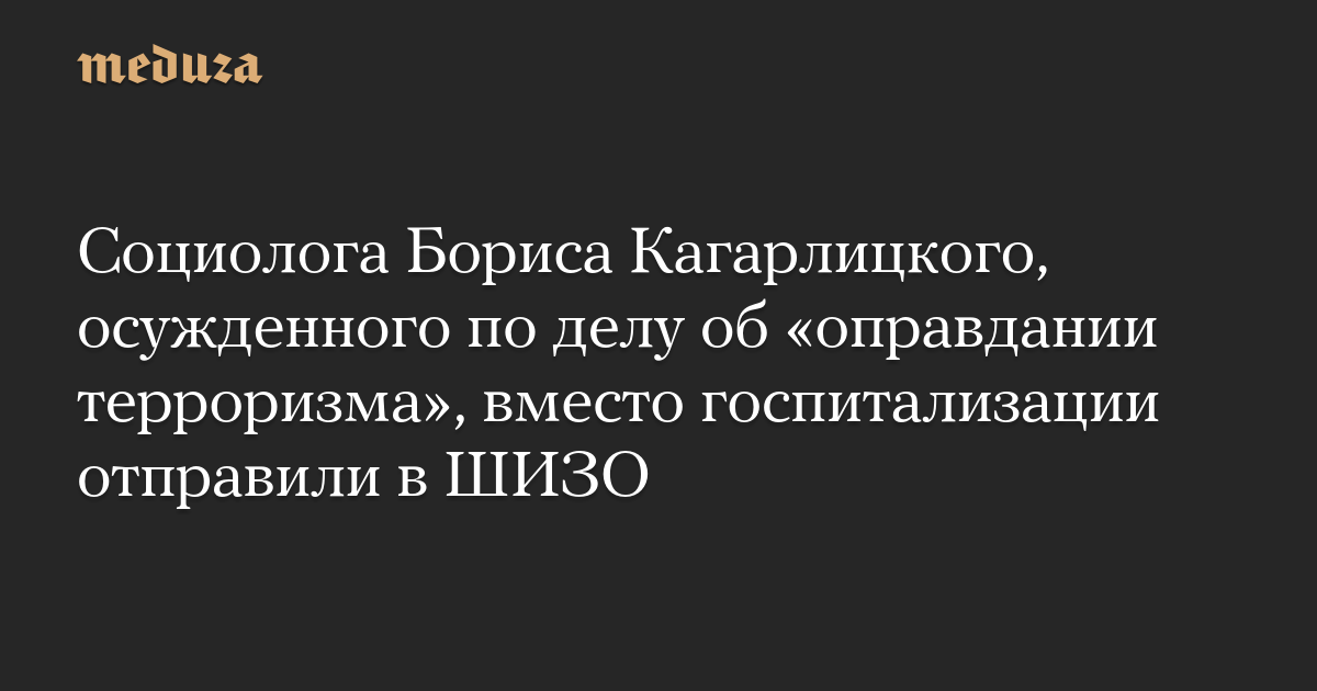 Социолога Бориса Кагарлицкого, осужденного по делу об «оправдании терроризма», вместо госпитализации отправили в ШИЗО