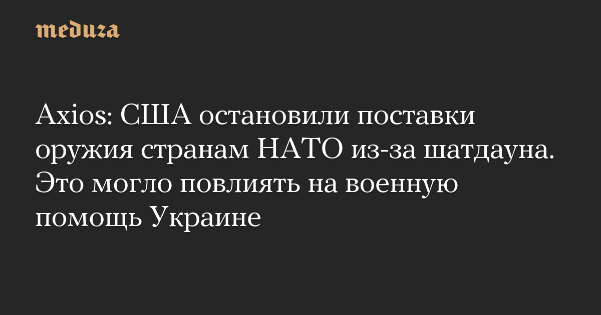 Axios: США остановили поставки оружия странам НАТО из-за шатдауна. Это могло повлиять на военную помощь Украине