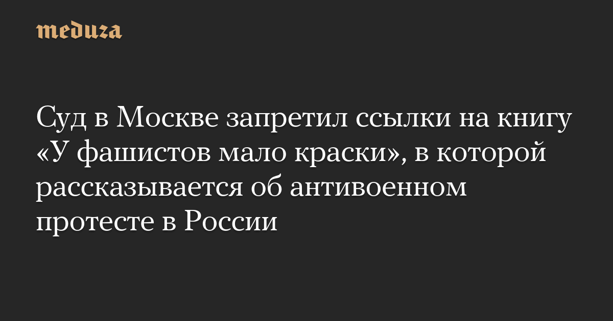 Суд в Москве запретил ссылки на книгу «У фашистов мало краски», в которой рассказывается об антивоенном протесте в России
