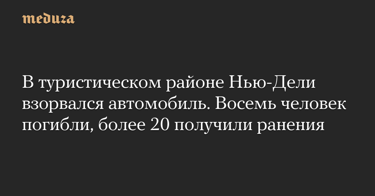 Восемь человек погибли, еще 24 получили ранения при взрыве автомобиля в столице Индии Нью-Дели, сообщает The Times of India со ссылкой на заявления властей.