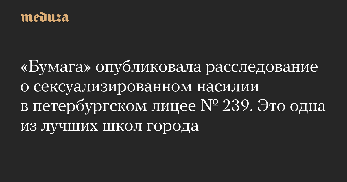 «Бумага» опубликовала расследование о сексуализированном насилии в петербургском лицее № 239. Это одна из лучших школ города