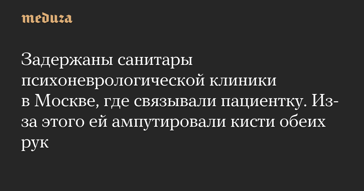 Задержаны санитары психоневрологической клиники в Москве, где связывали пациентку. Из-за этого ей ампутировали кисти обеих рук