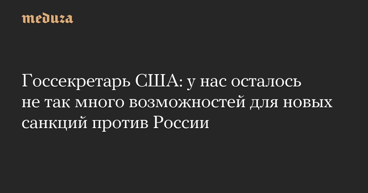 Госсекретарь США: у нас осталось не так много возможностей для новых санкций против России