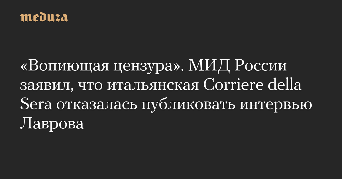 На момент написания этой новости найти интервью Лаврова на сайте газеты Corriere della Sera «Медузе» не удалось.
