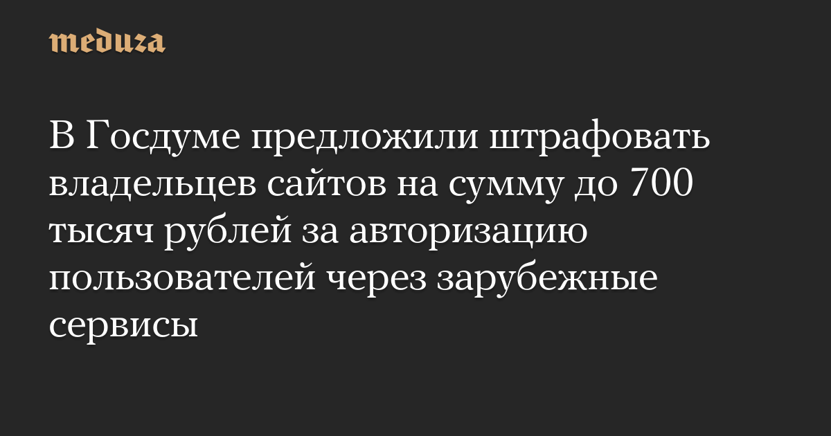 В Госдуме предложили штрафовать владельцев сайтов на сумму до 700 тысяч рублей за авторизацию пользователей через зарубежные сервисы