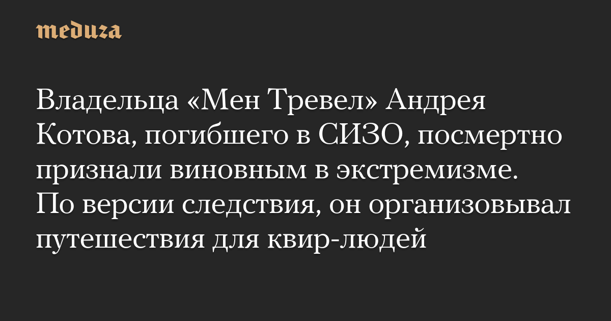 Владельца «Мен Тревел» Андрея Котова, погибшего в СИЗО, посмертно признали виновным в экстремизме. По версии следствия, он организовывал путешествия для квир-людей