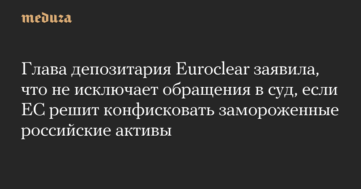 Глава депозитария Euroclear заявила, что не исключает обращения в суд, если ЕС решит конфисковать замороженные российские активы