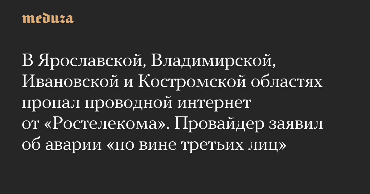 В Ярославской, Владимирской, Ивановской и Костромской областях пропал проводной интернет от «Ростелекома». Провайдер заявил об аварии «по вине третьих лиц»